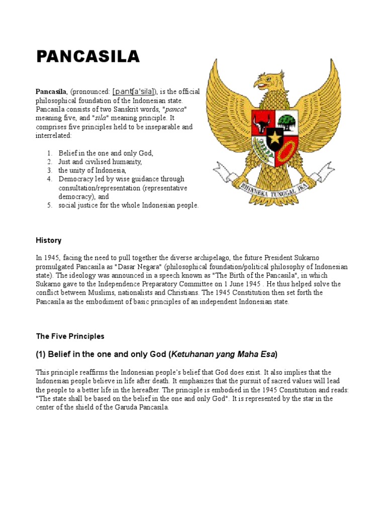 (based on indonesia's 'pancasila' or the five pillars of the nation. Pancasila as the philosophical basis of the indonesian state consists of two sanskrit words, panca the shield's five emblems in the indonesia's coat of arms garuda pancasila represent pancasila. Secara etimologis istilah pancasila berasal dari sansekerta india (bahasa kasta brahmana) adapun bahasa rakyat biasa pengertian pancasila secara historis, terminologis dan menurut para ahli. Kata dinamika bermakna kekuatan penggerakan. Indonesians often refers to their land as 'ibu pertiwi' or 'mother earth').